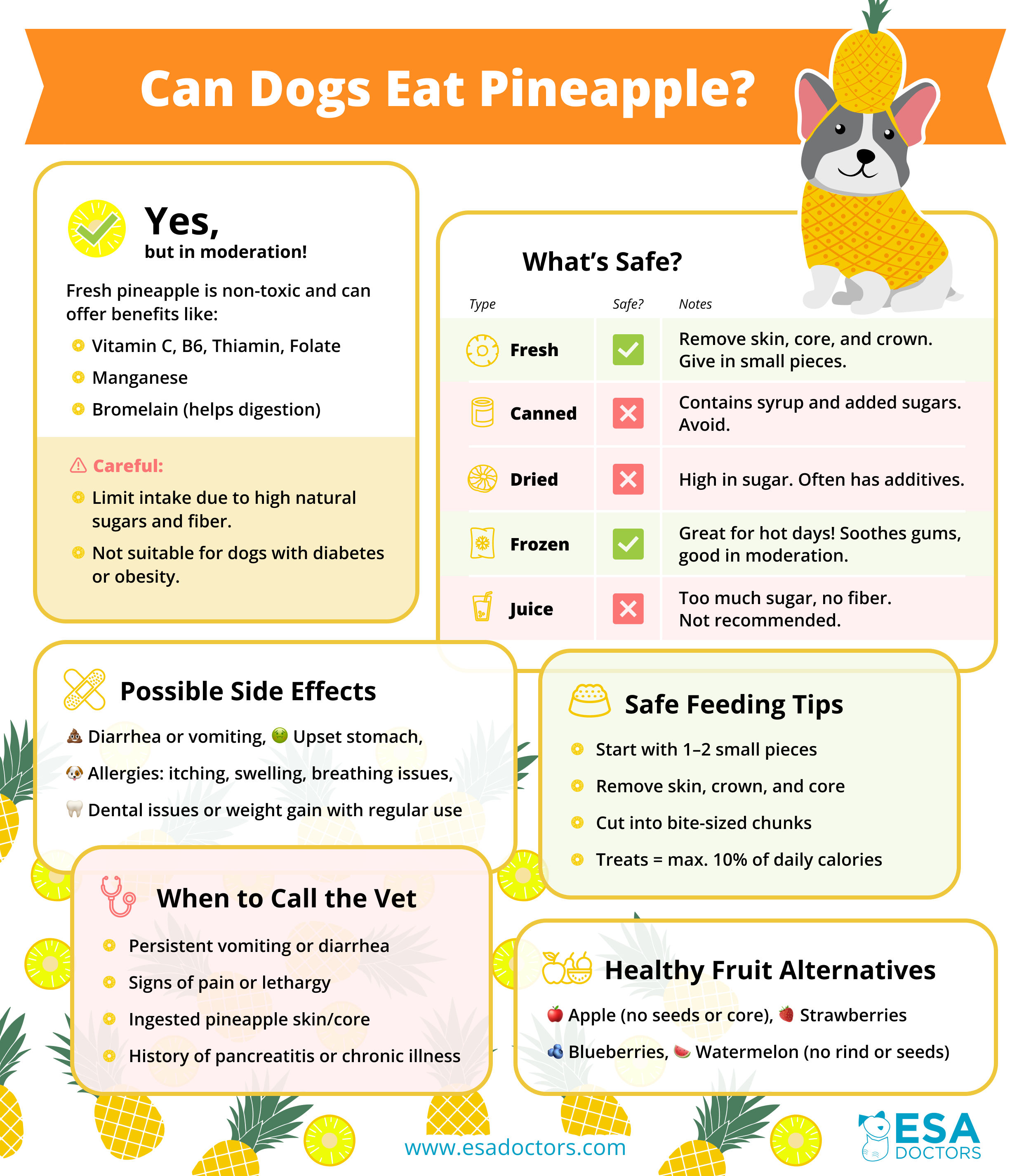 YES, dogs can safely eat fresh pineapple in moderation. This tropical fruit is non-toxic to dogs and can even provide beneficial nutrients. However, there are important guidelines to follow when feeding pineapple to your canine companion.
